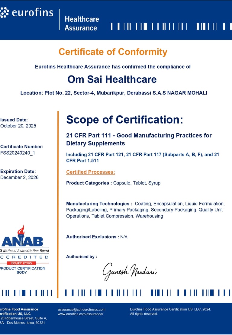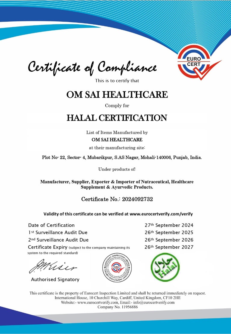 Every product batch undergoes rigorous testing to meet international standards for purity, safety, and consistency.